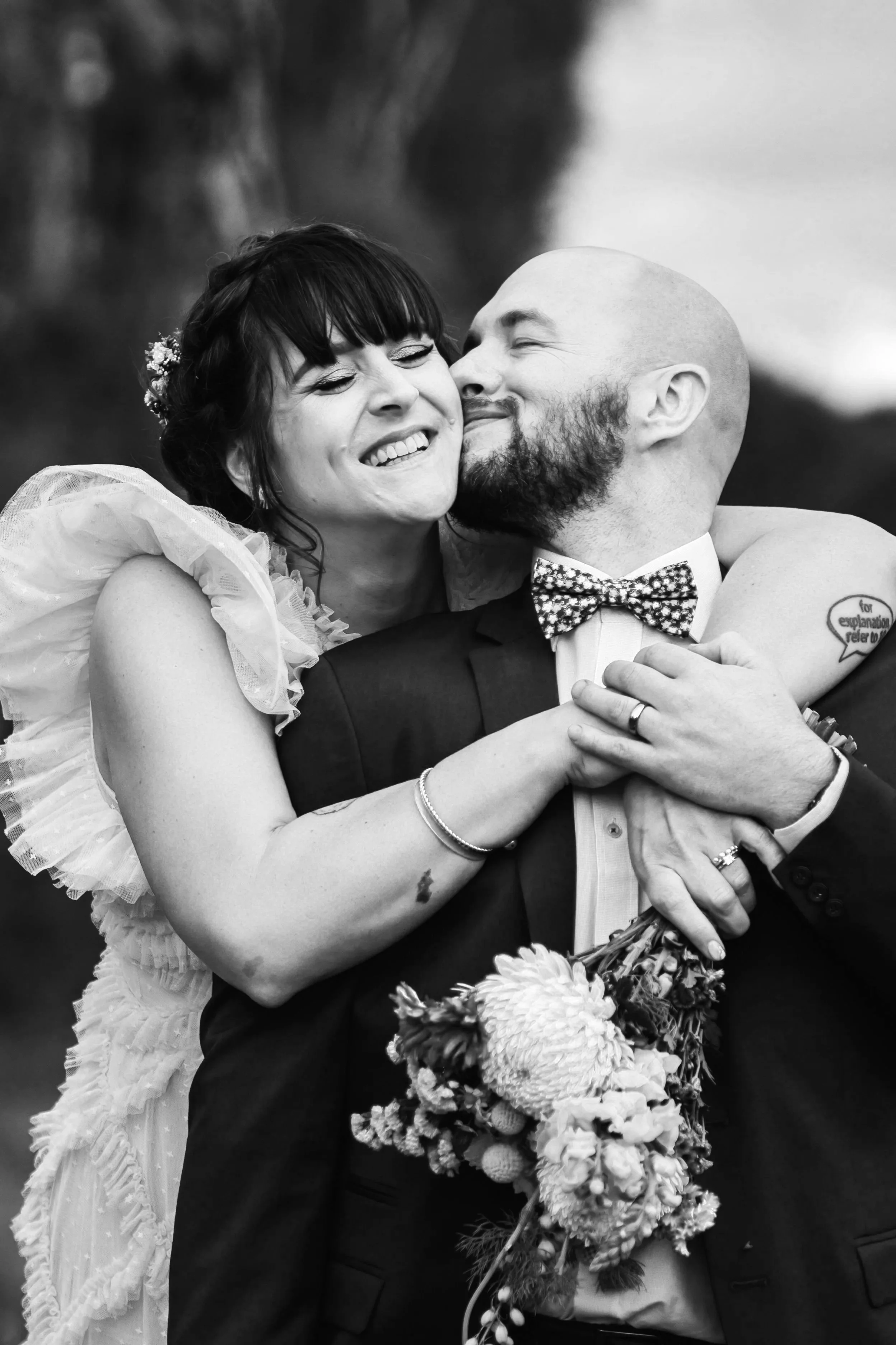 S + J married on a rainy Daylesford day featuring perfect white florals and a furry, four legged bridal party